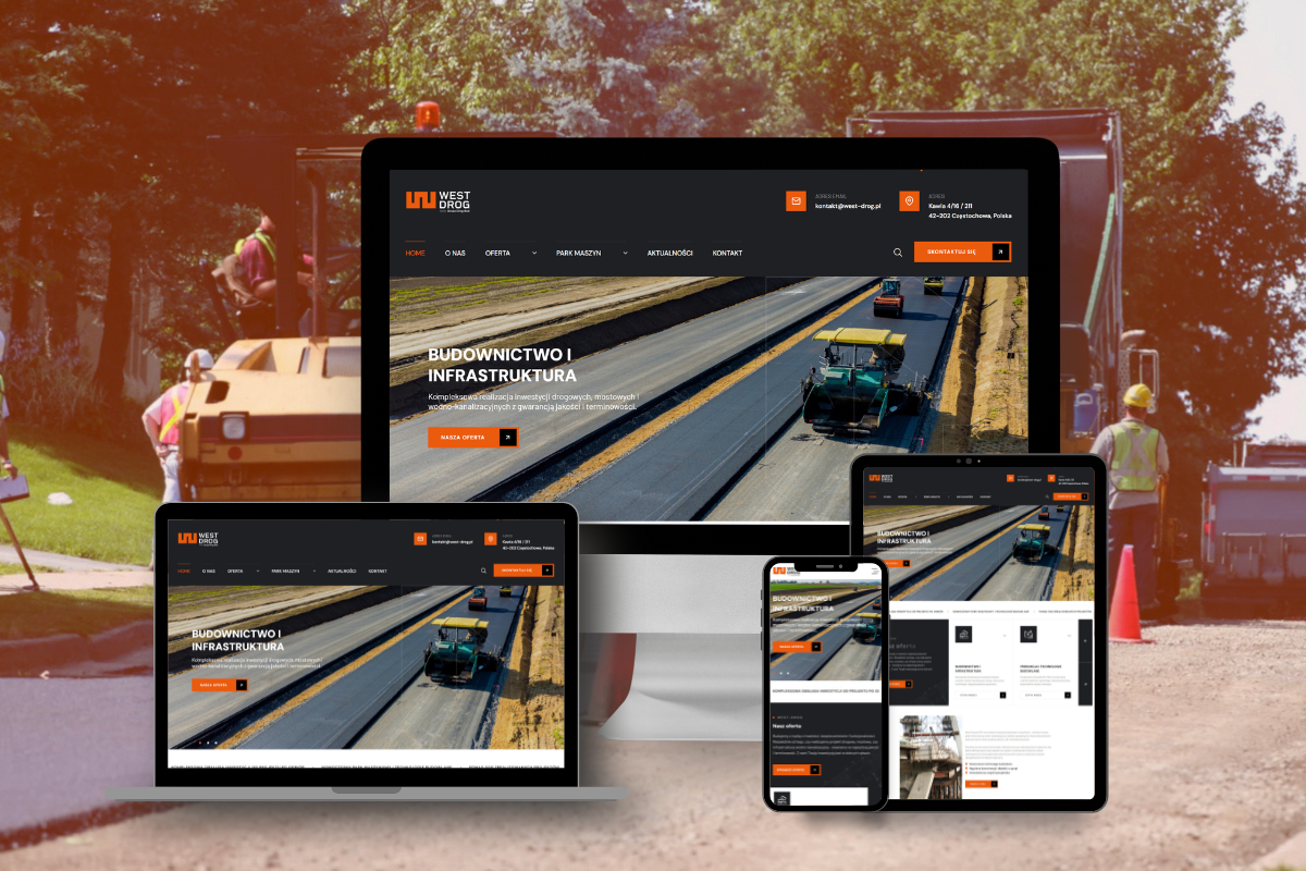 Projekt utrzymano w spójnej kolorystyce firmowej, a całość zaprojektowano z myślą o prostocie obsługi i intuicyjnej nawigacji. Efektem jest profesjonalna, przejrzysta witryna, która skutecznie prezentuje ofertę West-Drog i wspiera rozwój marki w branży budowlanej.